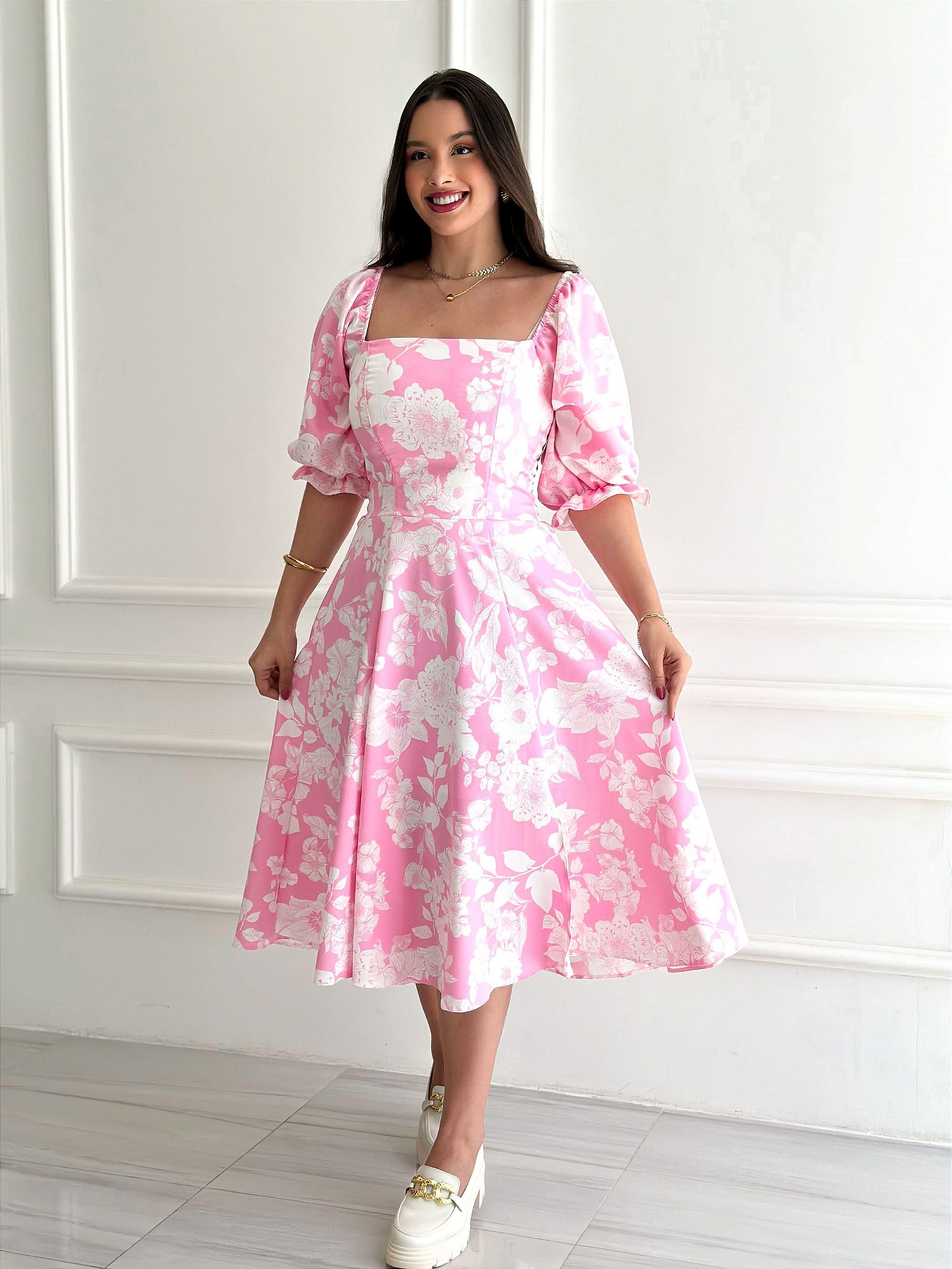 Modelo: Vestido Midi com mangas bufantes.