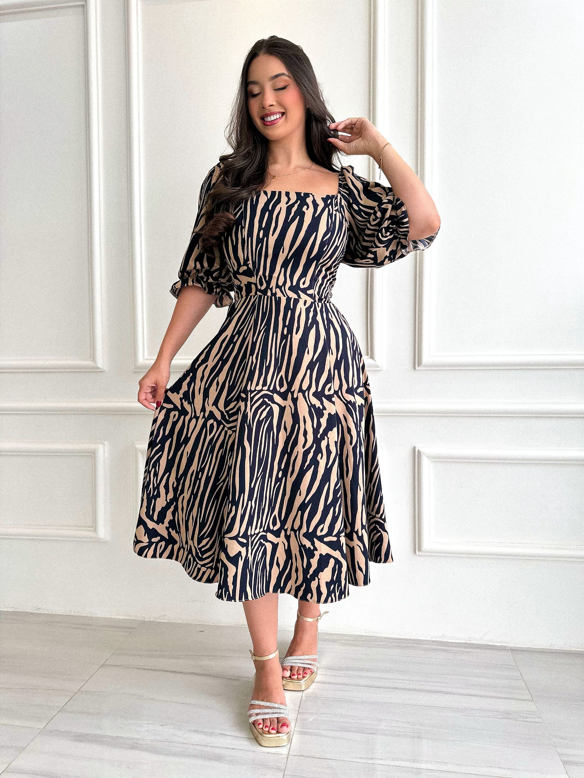 Modelo: Vestido Midi com mangas bufantes.
