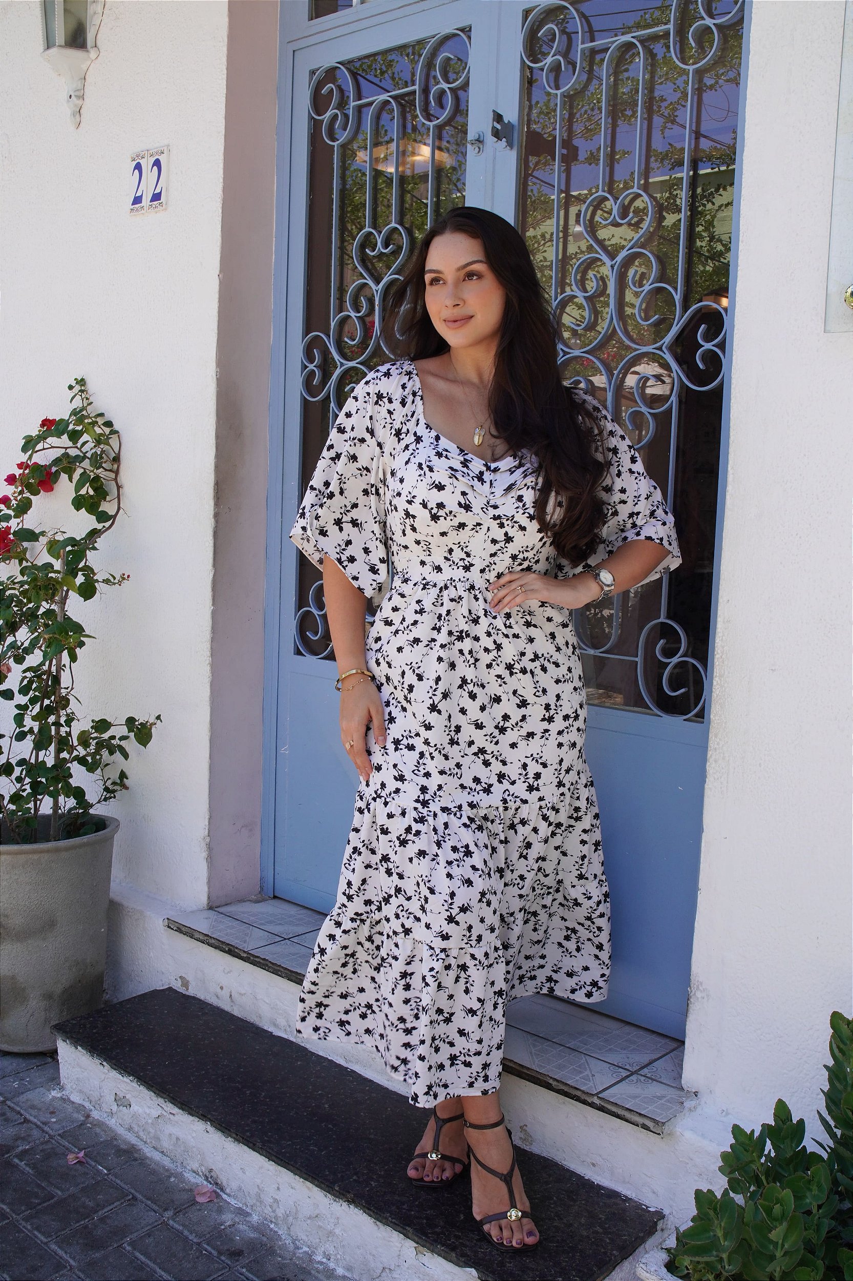 O Vestido Noele é a escolha perfeita para quem busca um look feminino, leve e elegante. Com saia no estilo três marias ele traz um caimento fluido e delicado que valoriza a silhueta com movimento e sofisticação.