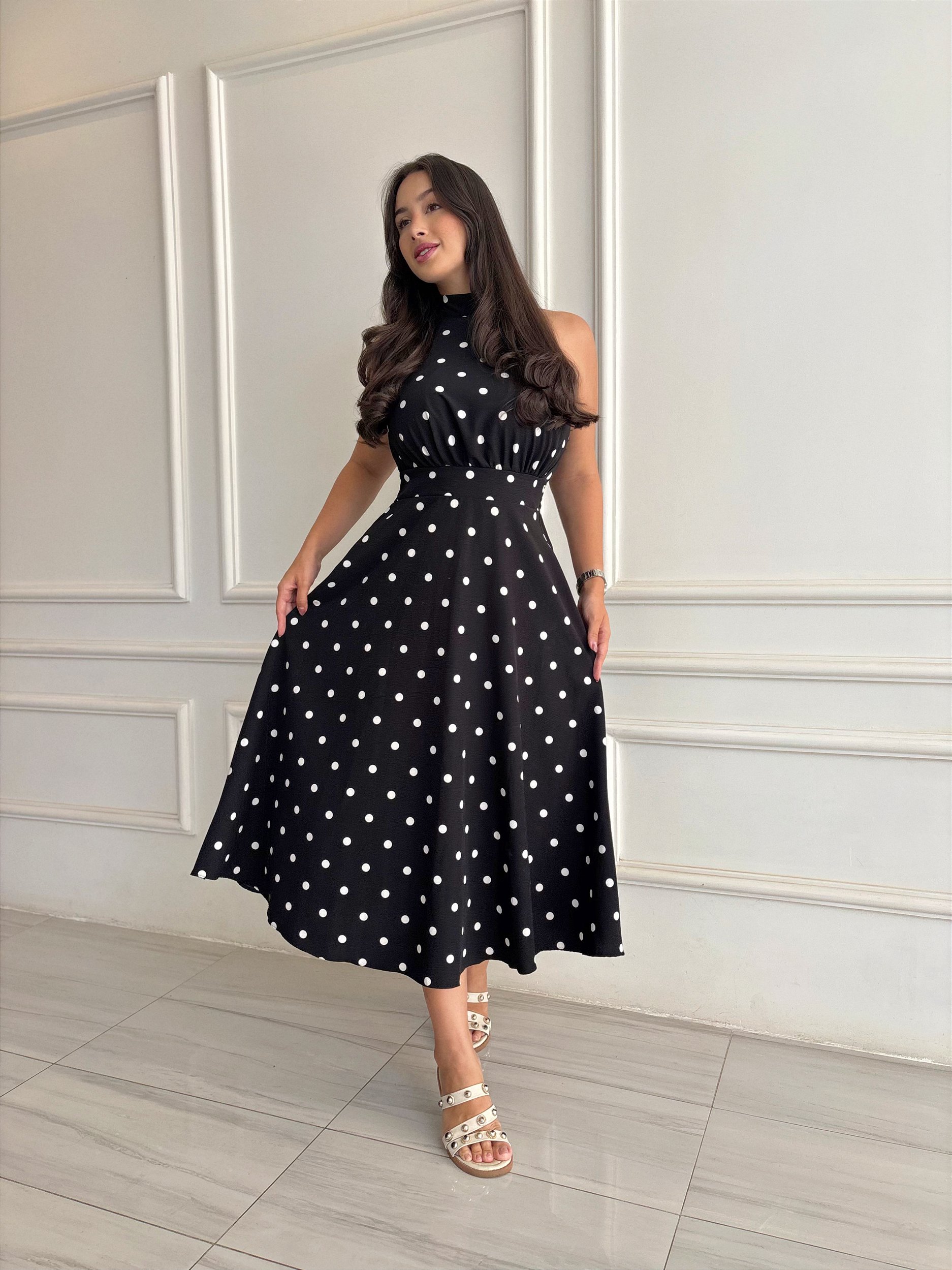 Vestido Pérola - Preto Poá